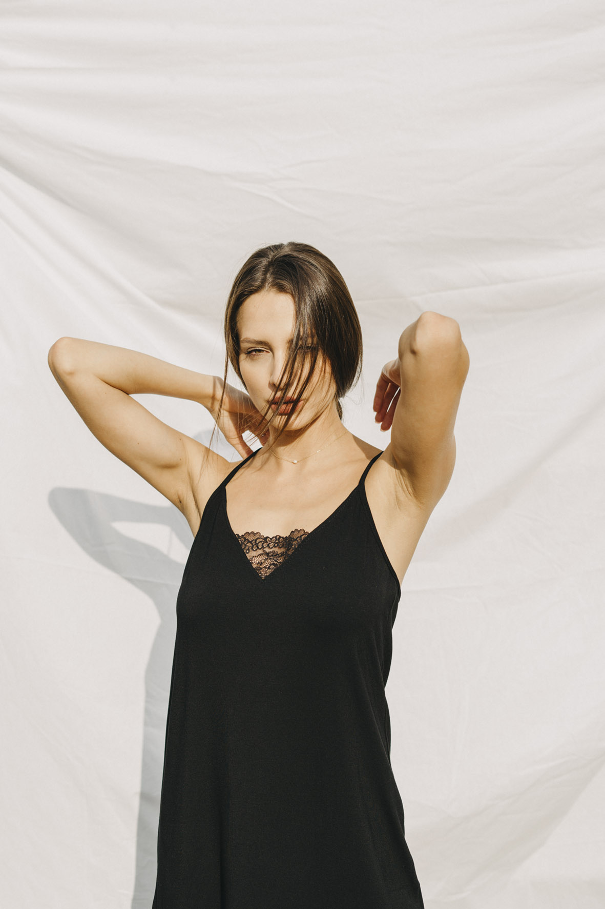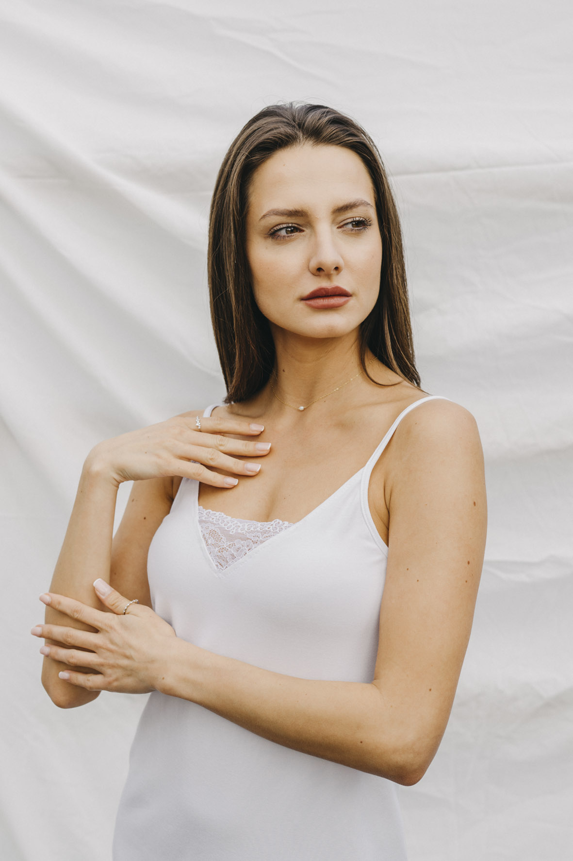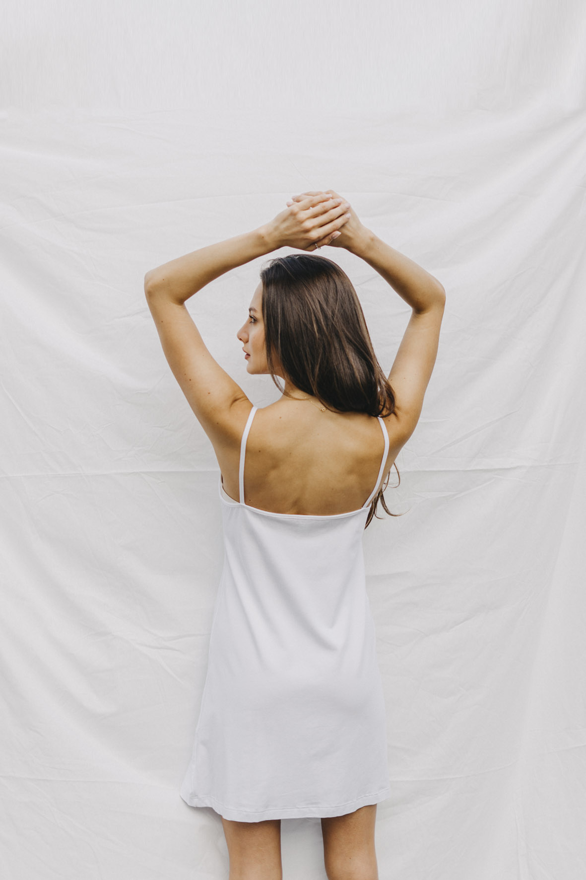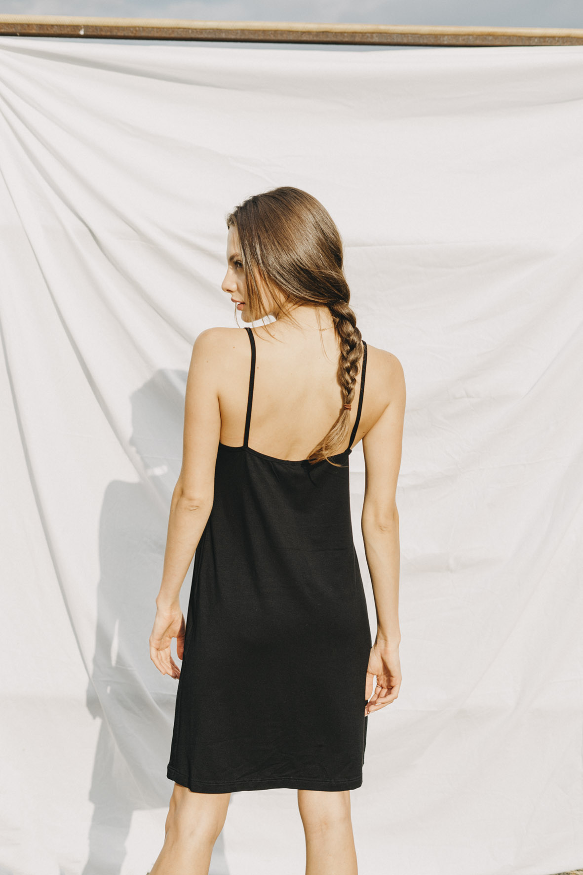 The Romantic nightgown with a V-neckline reaches approximately above the knees (depending on your height, we recommend following the size chart). Treat yourself to freedom – the stretchy fabric and well-designed cut with thin straps ensure that the pajamas don't pull, pinch, or squeeze anywhere. See for yourself.
